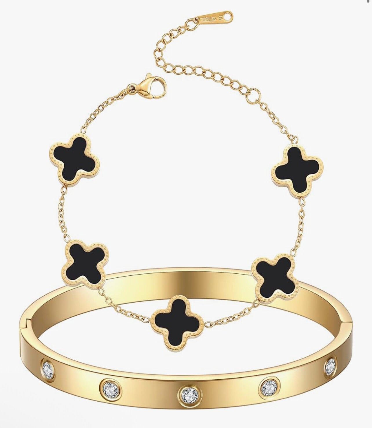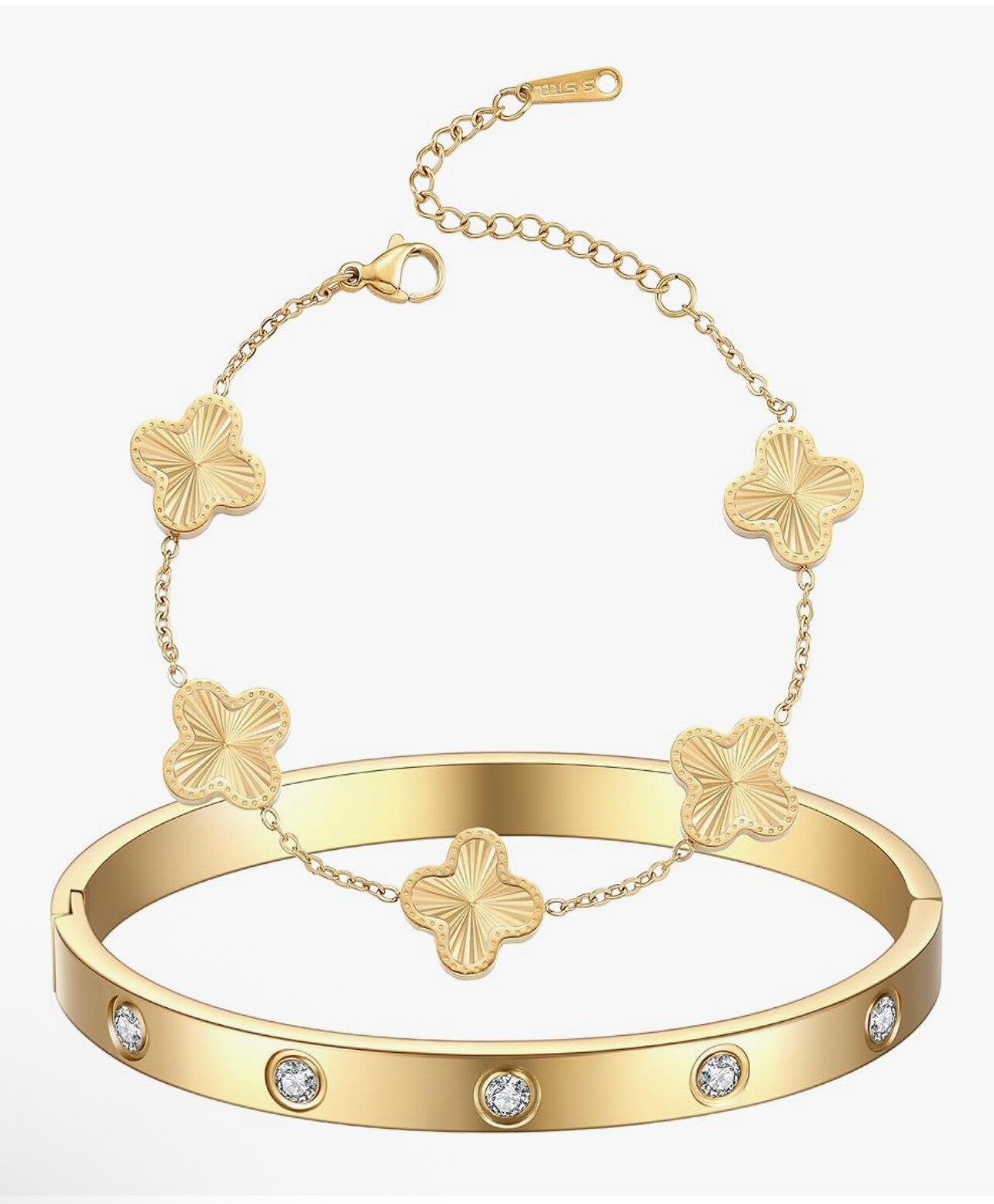 Pulsera de trébol chapada en oro de 18k, conjunto de brazaletes de amor para mujer, pulseras de amistad sencillas y modernas, joyería de la suerte, lindos regalos para mujeres.