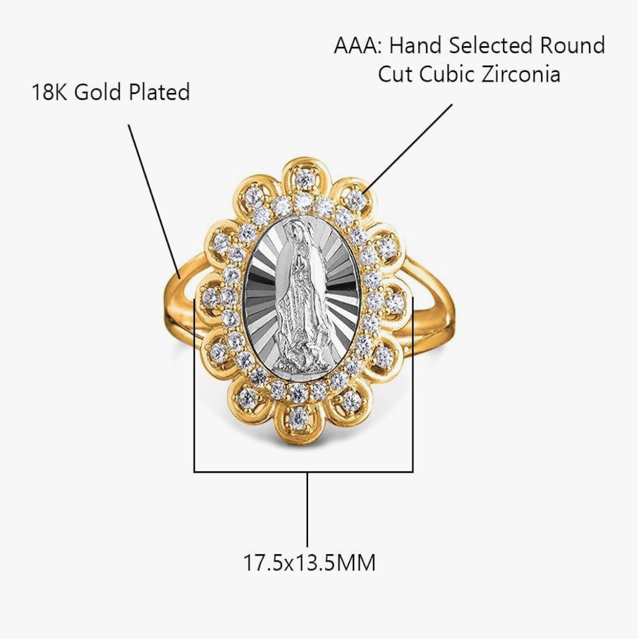 Savlano Anillo floral religioso para mujer, chapado en oro amarillo y blanco de 18 quilates, con circonita cúbica de corte redondo